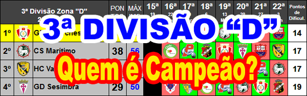 campeonato; 4) Melhor quociente -divisão- entre golos marcados e sofridos em todos os jogos