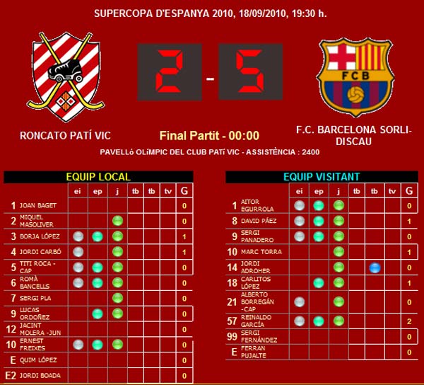 0-2 pelo Nº 4 aos 15' 1ªP