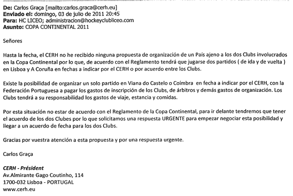 Tudo começa a 3 de Julho com um mail do Sr. Carlos Graça ao HC Liceo,